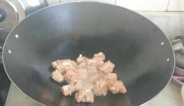 醃制好後在鍋中倒入食用油,然後將排骨放進去炸炸一分鐘,炸好一面後翻動排骨,在炸一分鐘,讓兩面都炸到