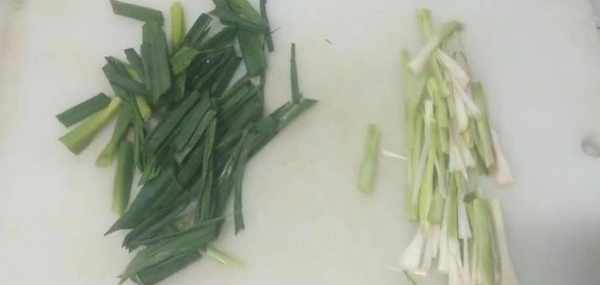 首先我們先準備好蒜,將蒜葉和蒜頭分開,切好備用