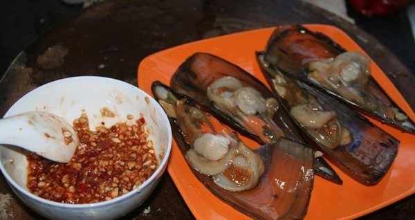 調制蒜蓉醬汁,把大蒜剝皮後拍碎再剁成蒜蓉,放到碗中加生抽,耗油,辣椒,料酒攪拌均勻即成,不喜歡吃辣的朋友可以不用放辣椒。然後用勺子淋到螺肉上。