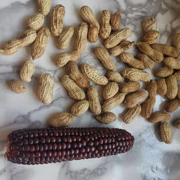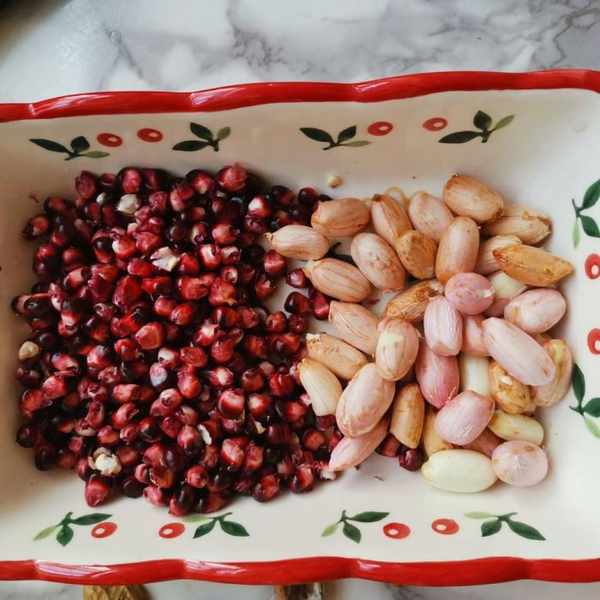 第二步:把鮮黑玉米剝下粒來,鮮花生去殼備用。