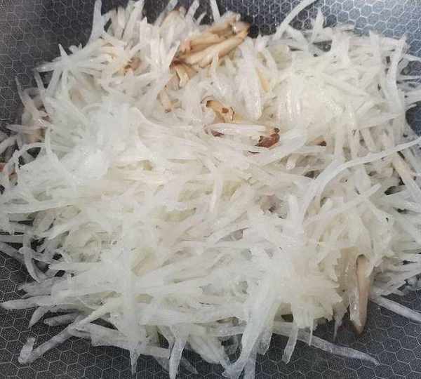第3步、放入白蘿卜絲繼續翻炒。