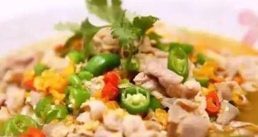材料:牛肉片、萵筍、青紅椒、辣椒醬、鹽、雞精、雞汁、南瓜汁、野山椒、白醋、薑米、蒜米、高湯、香菜