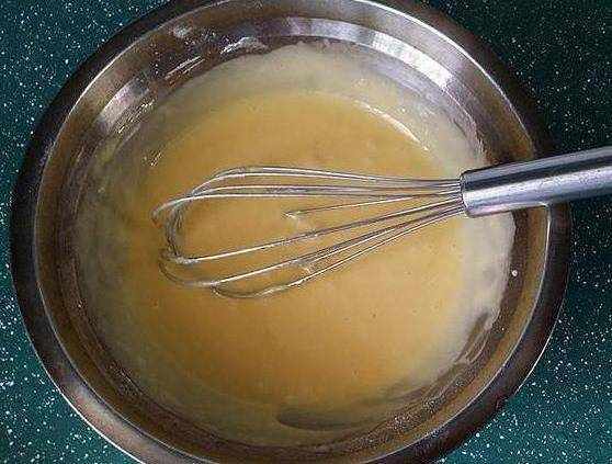 第三步,將2個雞蛋磕入一個碗中,接著往雞蛋裡加入適量的和半勺十三香攪散,然後往雞蛋液裡倒入半杯面粉,調成蛋粉糊。