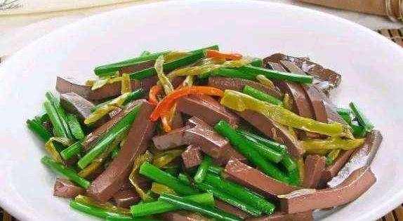 原料:鴨血 1塊 蒜薹 1小盤 青蒜 3根 油鹽 適量 制作: