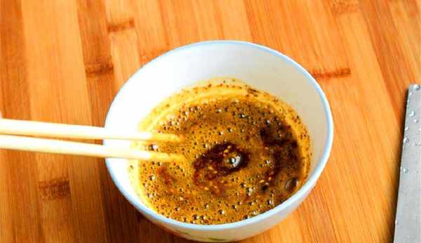 3、準備少許蘸水辣椒粉,澆上熱油拌勻,油潑辣子做好備用;