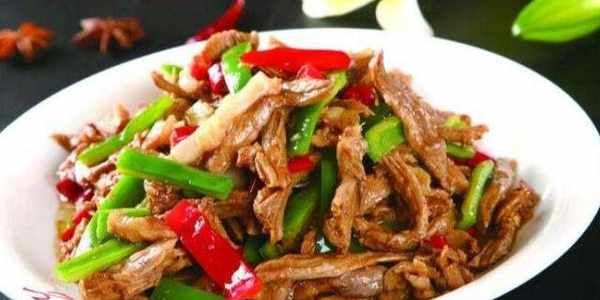 2.熱鍋冷油後,放入蒜薑片爆香。接著倒入手撕肉煸炒,放入調味料和青紅椒炒均後。大火煸炒制香即可出鍋。