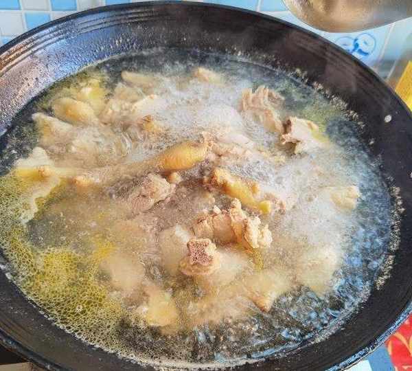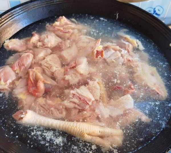 第12步、焯水以後,將雞塊沖洗幹凈。