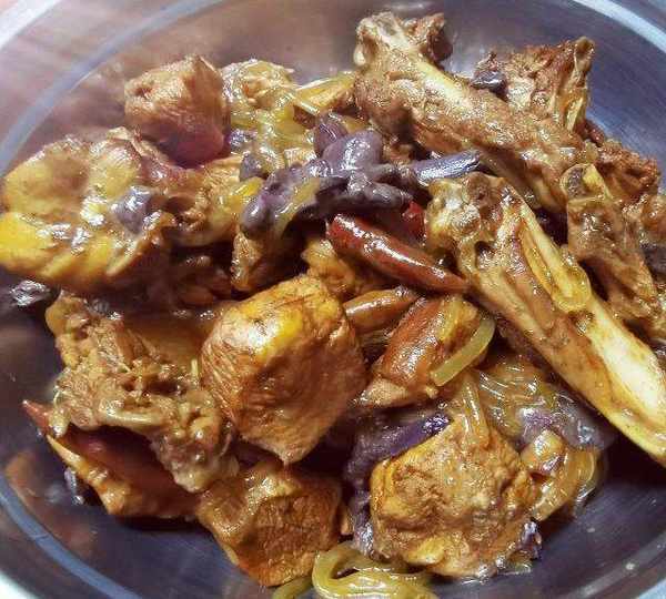 原料:大公雞、紅蘑、山藥粉、生抽、老抽、料酒、啤酒、蔥、薑、蒜、花椒、大料、幹辣椒。
