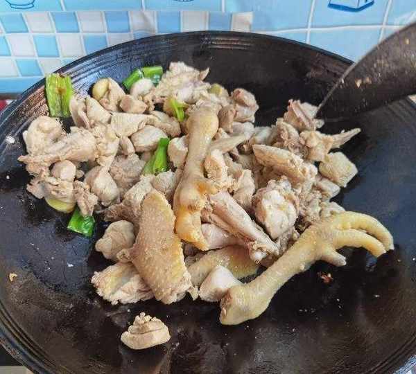 第16步、炒香以後倒入雞塊。