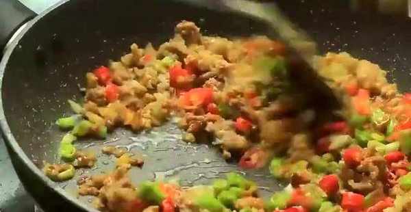 然後加入黃豆醬,炒出醬香味。再把青紅椒放進去翻炒一份,把豆腐放進來翻炒均勻,加入調好的料汁,大火煮兩分鐘,最後加入淀粉水,炒至湯汁黏稠,出鍋好香。再來點蔥花,香噴噴的傢鄉豆腐就做好瞭,豆腐這樣做非常的下飯,濃濃的醬香味非常的開胃。