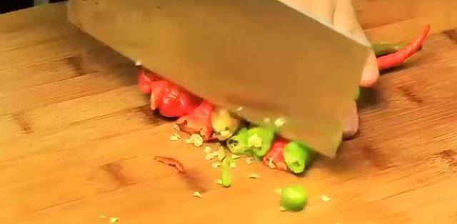 先把豆腐切成塊,先橫豎切,切成方塊,切好放入碗中,鍋內把水燒開,加入一勺鹽關掉火,把豆腐放進來浸泡一下。接著來幾點配菜,青紅椒去蒂,蒜給它拍爛。切成蒜末。準備一塊薑,先切片,再切成薑末,最後準備一小塊肉,先切碎,放入碗中。