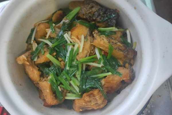 5.移入砂鍋內燜五分鐘,再放入香蔥段蓋上鍋蓋燜一下即可。