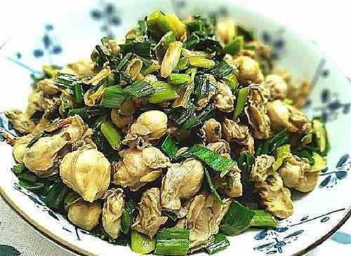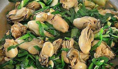 海蠣和韭菜一起炒。韭菜具有補腎、壯陽、固精的作用。