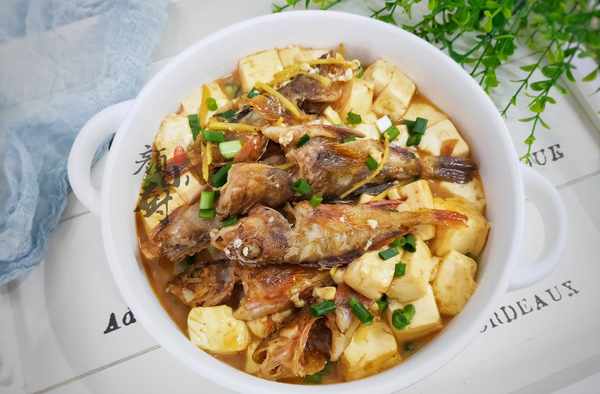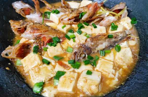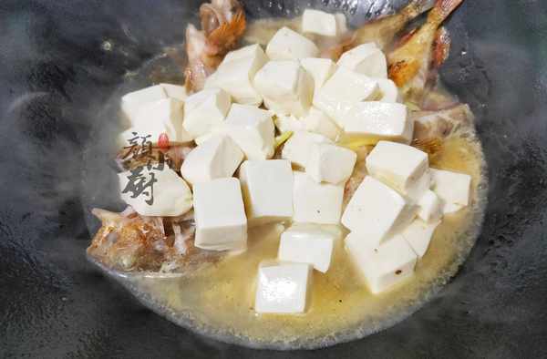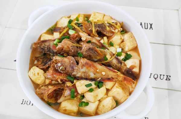 食材:紅石斑魚250克,豆腐2塊,生薑適量,吃適量,老抽少許,雞精少許,鹽少許,食用油少許。