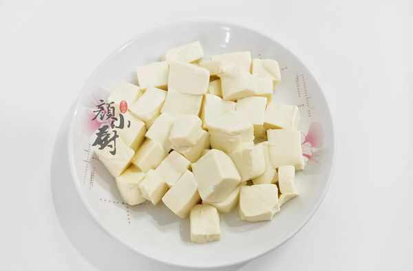 步驟二:豆腐稍微清洗一下,切成小方塊備用。