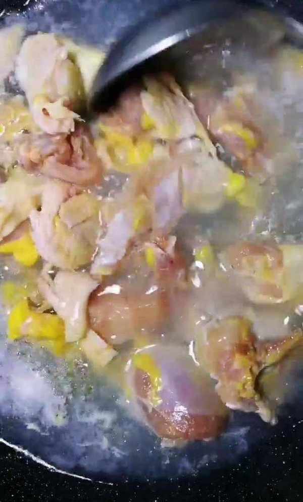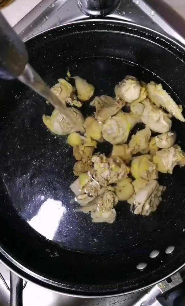 在鍋中倒入適量的涼水,接著把雞塊放進去,註意,水一定要沒過雞塊,把雞肉焯一下。