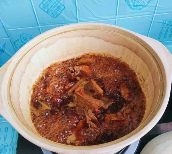 第15步、燒開放鹽,蓋上鍋蓋小火燉40分鐘。