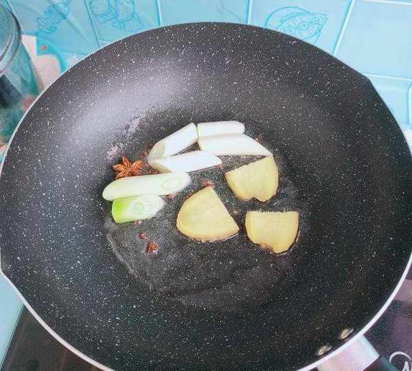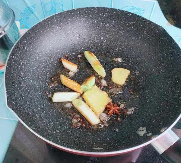 第6步、鍋內放玉米油,倒入香料炒香。