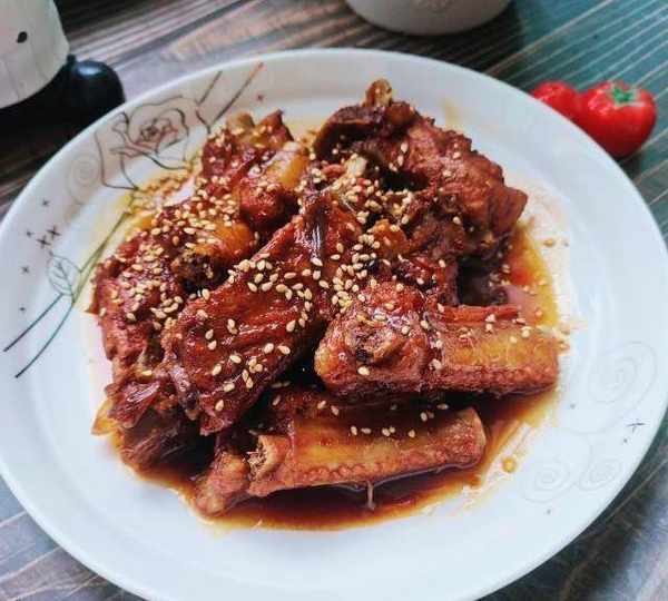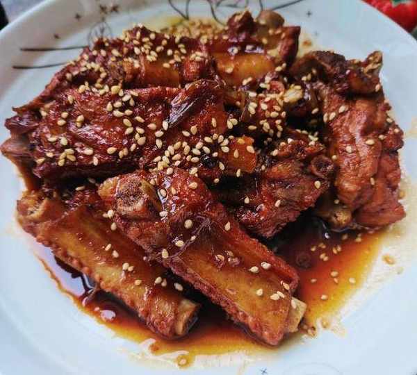 原料:排骨、老抽、生抽、米醋、玉米油、鹽、料酒、白芝麻、大蔥、薑、大料、花椒、冰糖。