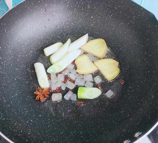 第7步、放入冰糖翻炒一會。