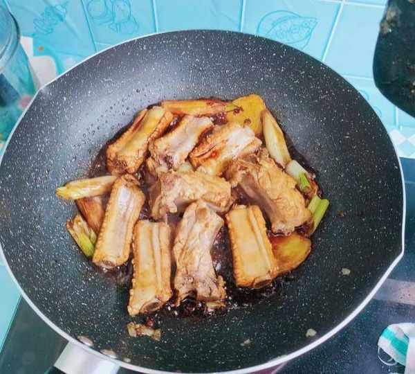 第9步、倒入排骨翻炒均勻。
