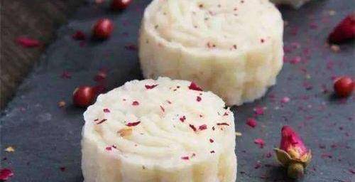 3.把紅豆泥制成一個個大小適中的丸子,山藥泥包住紅豆丸,放入相應的模型裡成型,倒出放入冰箱冷藏3-4個小時,即可食用
