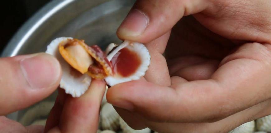 煮熟瞭的血蚶打開後也是帶血汁的,並不是沒有被煮熟哦,最美味的也恰恰就是這個看起來血淋淋的汁。