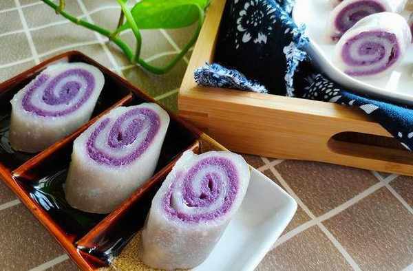 韓式跳跳糕用紫薯和山藥做主食材,加上糯米粉和木薯淀粉,可能是因為蒸熟後彈性很好,因此才得名韓式跳跳糕。
