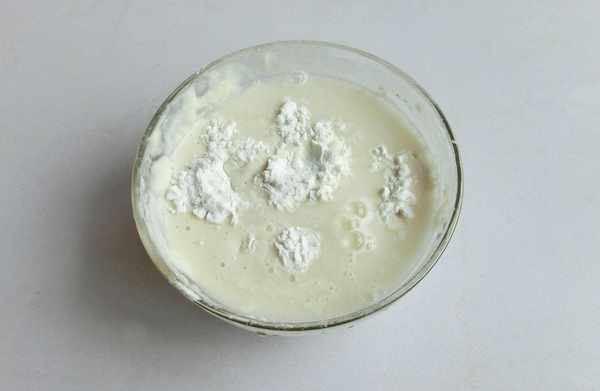 3、面粉、淀粉、雞蛋以2:2:1的比例。加點清水調成稠一點的面糊,在面糊裡加點油,加點鹽,炸出來會更脆