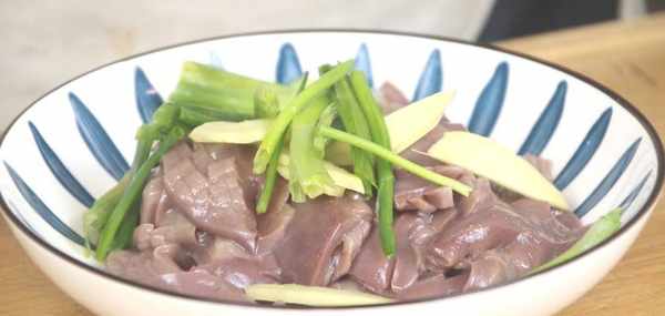 1.首先準備新鮮的豬腰一個從中間切開去掉腰臊,然後斜刀45度給它切成牡丹花的樣子放在清水中洗凈。把表面的血水沖洗出來。