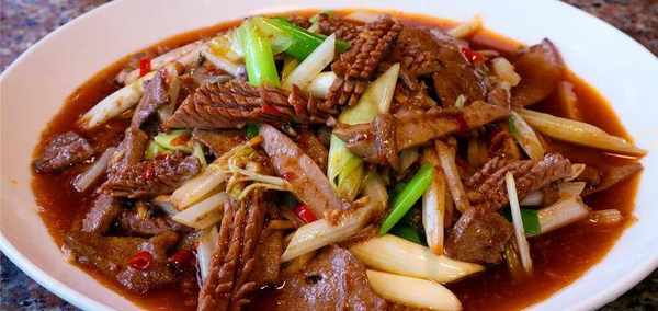 5.然後再放入準備好的豬腰,加入生抽、老抽陳醋調味,快速地翻炒均勻,淋入一勺水淀粉就可以出鍋啦!