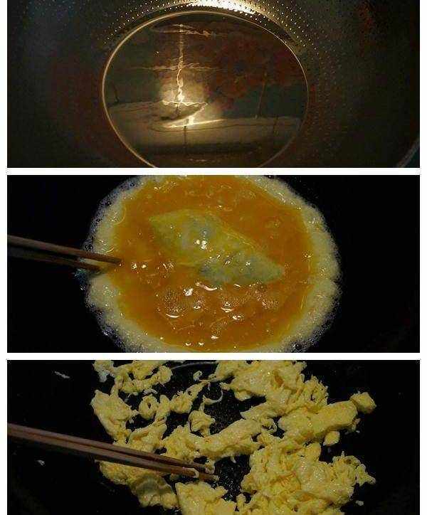 3.鍋中倒適量的植物油,燒至8成熱,拿打雞蛋的筷子頭在油鍋中一放,筷子頭上的蛋液脹起的火候就成;