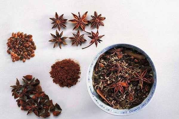 (4)香葉、辣椒、大蒜、桂皮、八角、花椒、薑片準備好!(可根據傢裡有大料的數量,有什麼就放裡面就好) (八角 180克 花椒 220克 薑片 150克 良薑 50克 甘草 100克 畢卜 55克 桂枝 100克 桂皮 100克 白胡椒 100克 茴香 50克 肉扣 80克 白扣50克 丁香 25克,這個是具體方子)