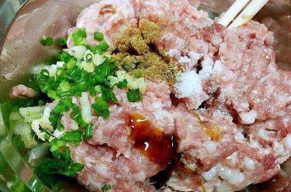 3.加入鹽、雞精、生抽少量順時針方向攪拌均勻即成餡料。
