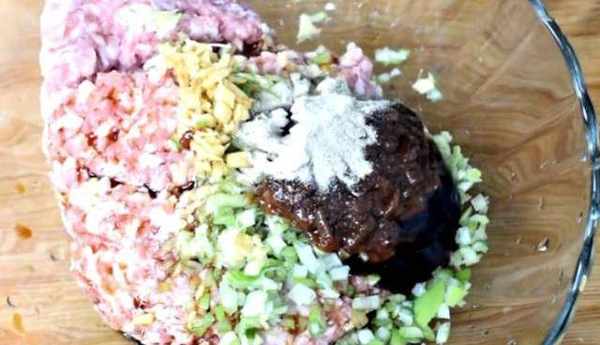【原材料】:雞蛋、洋蔥、蔥薑、料酒、生抽、黃豆醬、蠔油、胡椒粉、肉餡、淀粉水、食用油。