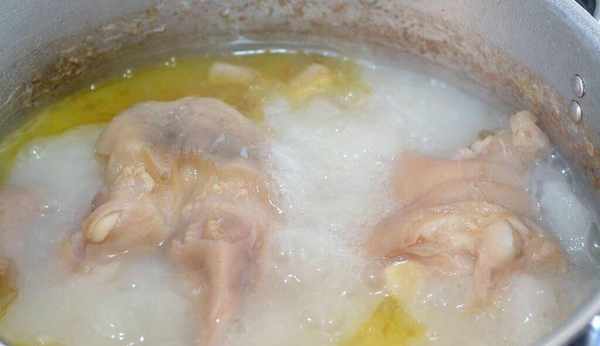 做法:1.準備一個豬手,放入清水中浸泡兩個小時,取出之後切成小塊放入鍋中,加入足量的清水,把水燒開,再倒入料酒,繼續煮5分鐘撈出,清洗幹凈備用。