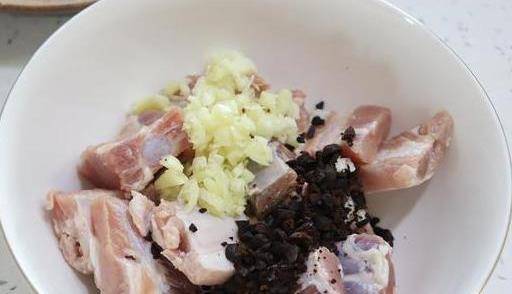 準備食材:豬肋排、豆豉、大蒜、生抽、蠔油、料酒、玉米淀粉、糖、花生油、鹽適量。