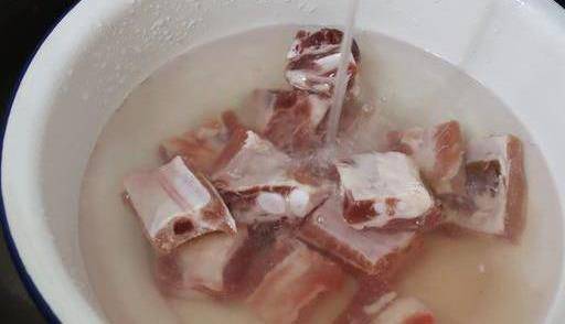 第一步:清洗排骨,先把排骨切段,一段大概五公分,切好之後放到盆裡沖洗,兩分鐘之後血水基本上已經沖幹凈瞭,就可以撈出排骨。
