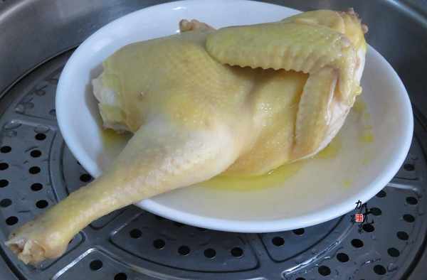 3、一邊土雞,開大火蒸15分鐘即可,如果是蒸整隻雞,建議大火蒸20-25分鐘。