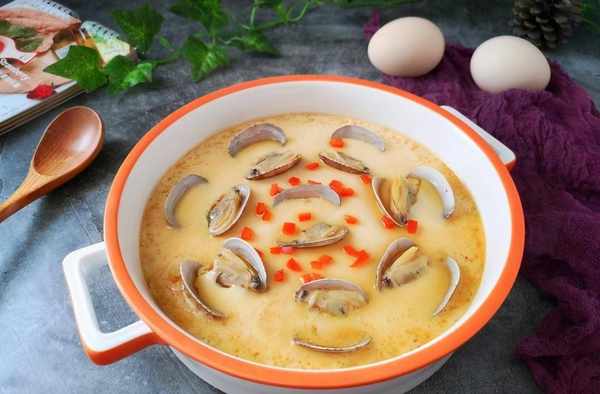 7、將煮好的蛤蜊擺放到盤中。放入蒸鍋中隔水蒸熟,水開後轉中小火蒸6分鐘左右。一定不要用大火蒸雞蛋羹,一個不小心就會蒸出蜂窩。如果蛋液比較深,蒸的時間相應長一些,我這個是敞口盤子,所以熟得快,蒸的時間比較短。