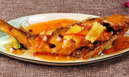 制作:一尾魚洗凈,魚腹內放入生薑和蔥結,魚背劃上兩道,均勻的抹上鹽和料酒醃制一下,鍋內放油,將醃制好的魚放進鍋中煎制一下,等到表皮定型撈出放在一旁備用。鍋內留少許的油,放入蔥薑蒜爆香,放入醬油,白糖,醋,鹽,料酒等調料,放入水淀粉將湯汁熬到濃稠,澆在煎制好的魚身上就可以瞭。