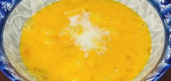 11.把攪拌好的淀粉水倒入雞蛋液裡,然後充分攪勻,攪拌至沒有顆粒就可以瞭。加一點淀粉雞蛋皮不但不容易破,而且口感更加筋道。