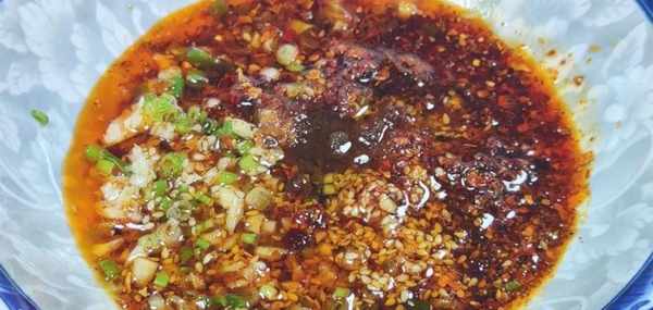 蘸料:蔥花、蒜末、白芝麻、辣椒面、熱油、生抽、香醋、食鹽、白糖、香油
