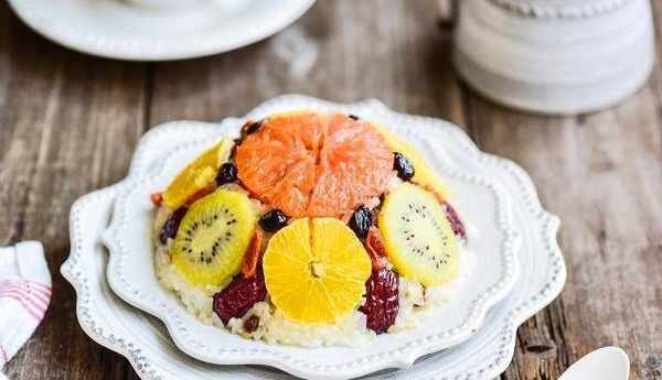 糯米200g,橙子半個,紅棗3個,獼猴桃1個,紅柚半個,枸杞10g,黑加侖20g,細砂糖適量,芝麻油適量