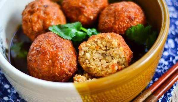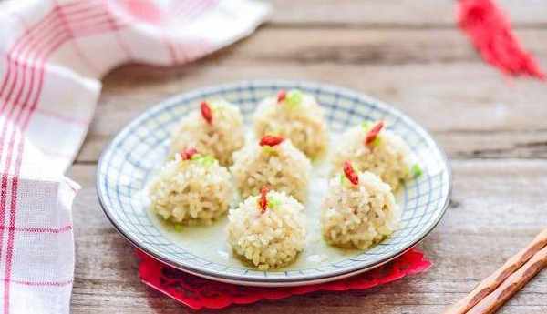 10、出鍋後可以在每個丸子上放一個枸杞,點綴一下就好瞭。