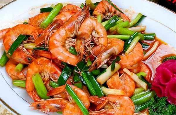 食材:大蝦、料酒、生薑、青椒