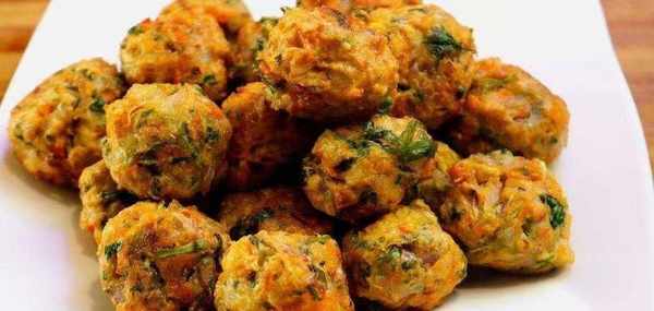 3.開火,在油溫五成熱的時候,用勺子或者用手把菜糊糊做成丸子放在油鍋裡面炸。慢慢地炸,可以用勺子攪動一下,讓丸子受熱均勻。把丸子炸到金黃香酥的時候就可以撈出來瞭