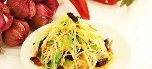 1.將圓滾滾的土豆削皮切成細絲兒,大白菜也一樣。