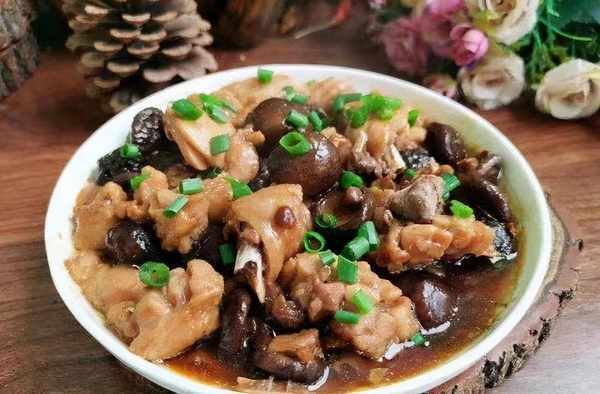 食材:雞腿、醬油、蔥、生薑、香菇