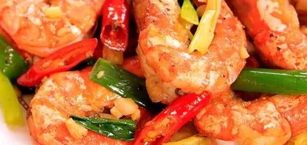 4.讓大蝦滾燙的油裡面遊泳,等到變得金黃有點酥脆的時候就可以撈出來瞭。然後再加入青紅椒和蔥薑爆香,再把炸好的大蝦倒進去翻炒,加入根據自己的口味加入一些調味品,香噴噴的大蝦就完活啦。